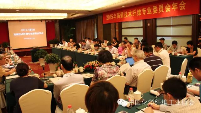 7月14日下午, 2015年高新技术纤维专业委员会年会在杭州萧山隆重举行,国家发改委产业协调司巡视员贺燕丽,中国工程院院士蒋士成,工信部消费品司调研员陈新伟,中国国际工程咨询公司石化轻纺处处长乐有华,产业用纺织品协会副会长郑俊林,中国化学纤维工业协会副会长赵向东、秘书长王玉萍等领导,以及来自全国各地的高新技术纤维产业链上下游及相关产业的专家、学者和企业家共约80人出席了会议。中国化学纤维工业协会副会长赵向东主持会议。
